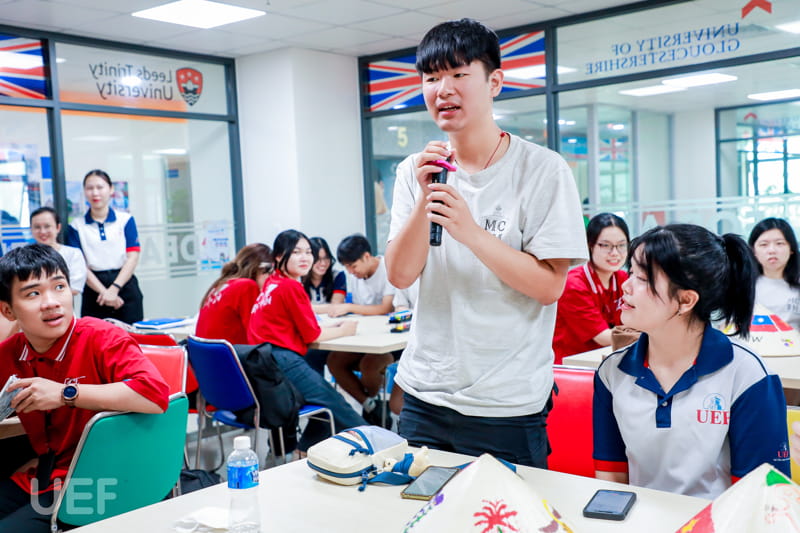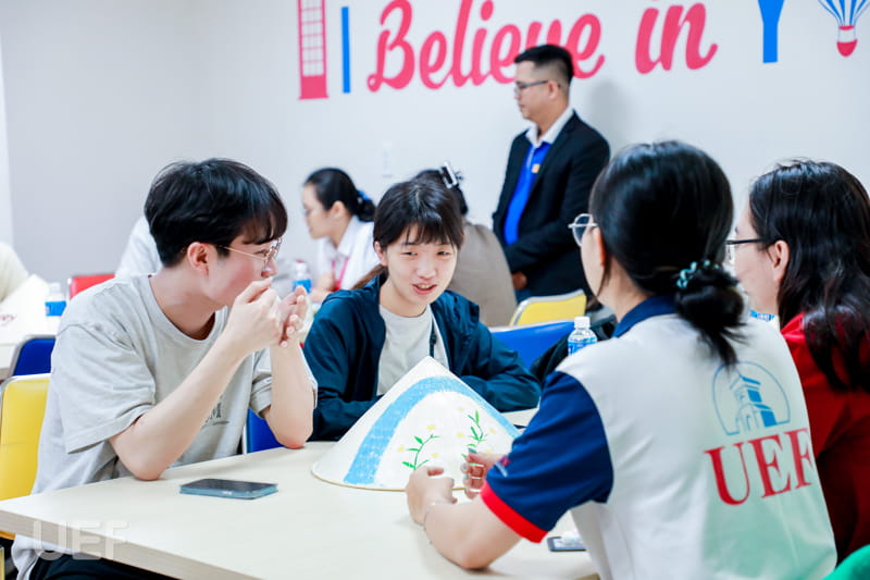 Tiếp nối chương trình “International Summer Camp in Viet Nam 2023”, sinh viên Ming Chi University of Technology - Đài Loan (MCUT) đã được tham gia hoạt động trao đổi văn hóa vào sáng 27/6. Với sự hỗ trợ từ giảng viên, sinh viên UEF, các bạn đã hào hứng tham gia các hoạt động thú vị, cũng như lắng nghe chia sẻ những kiến thức về văn hóa Việt Nam.