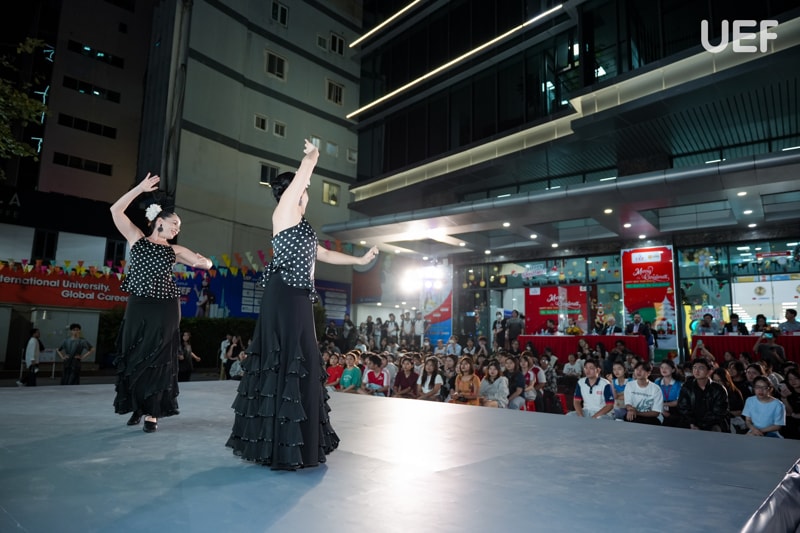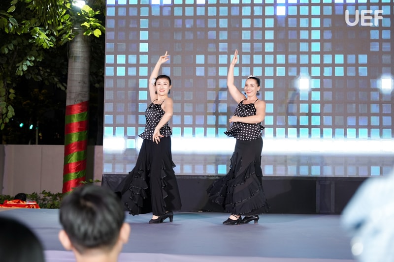 Phát biểu tại chương trình, ThS. Nguyễn Quốc Việt khẳng định Flamenco & Dance không chỉ là hoạt động văn hóa thường niên mà còn là minh chứng sinh động cho chiến lược quốc tế hóa của UEF để sinh viên được tạo điều kiện tiếp cận, trải nghiệm và đối thoại trực tiếp với các nền văn hóa khác nhau. UEFers tham gia vào các tiết mục biểu diễn cho thấy khả năng hội nhập tự nhiên, chủ động của sinh viên trong một môi trường học tập mang tính toàn cầu. Điểm đặc sắc của chương trình nằm ở sự giao thoa văn hóa đa chiều. Flamenco - biểu tượng nghệ thuật của Tây Ban Nha với những chuyển động vừa mạnh mẽ vừa uyển chuyển hòa cùng Bachata đậm chất Mỹ Latinh, mở ra nhịp điệu sôi động của không gian liên văn hóa.