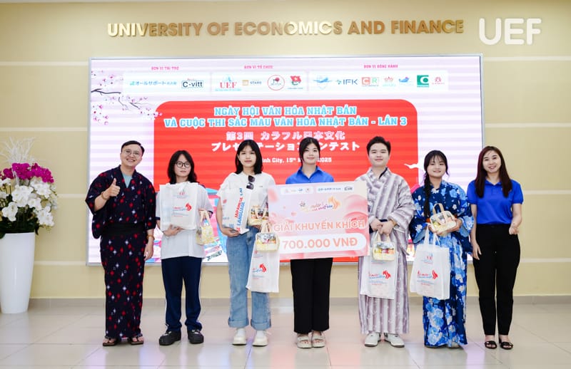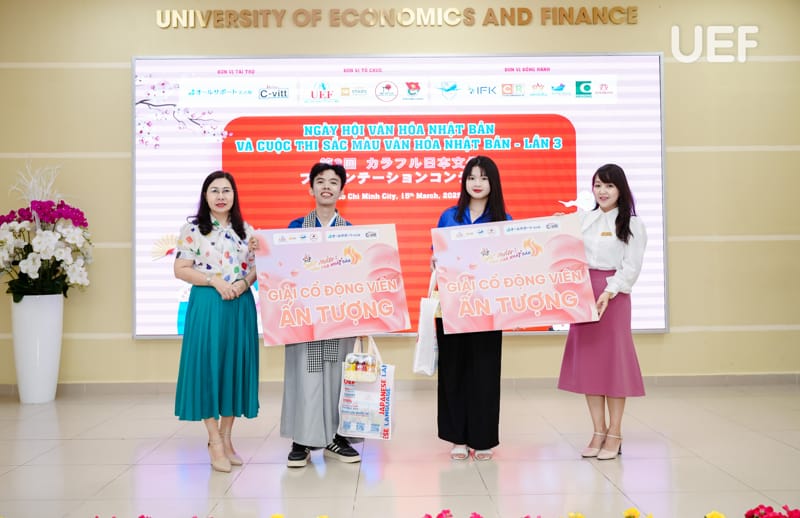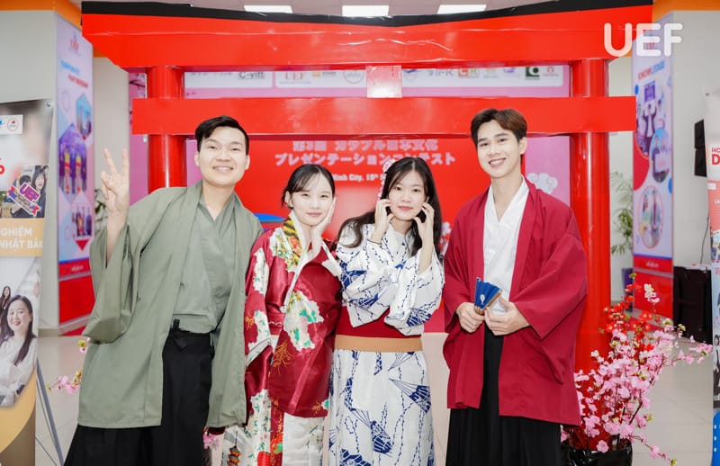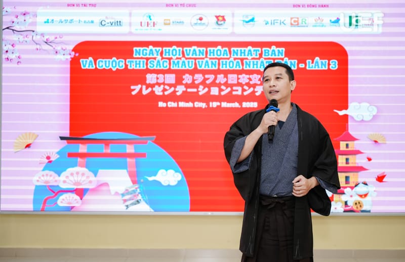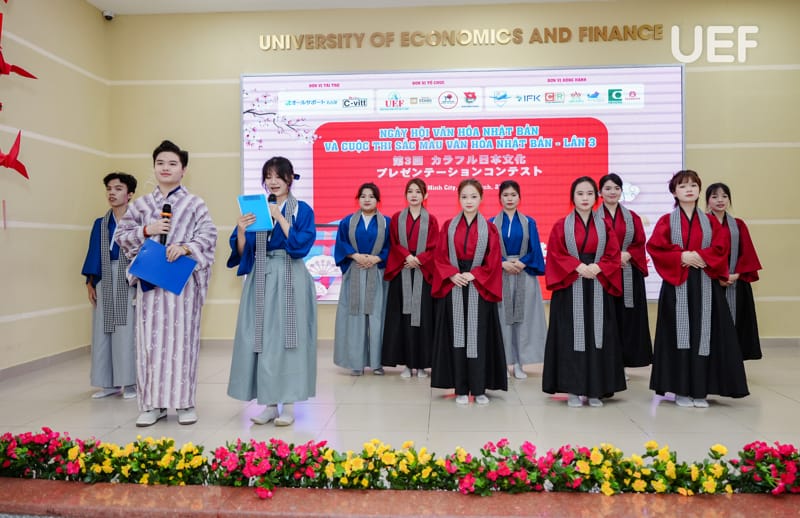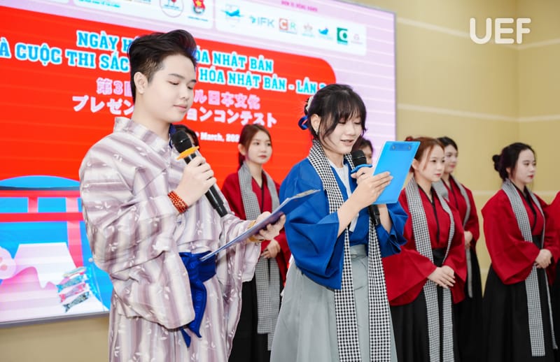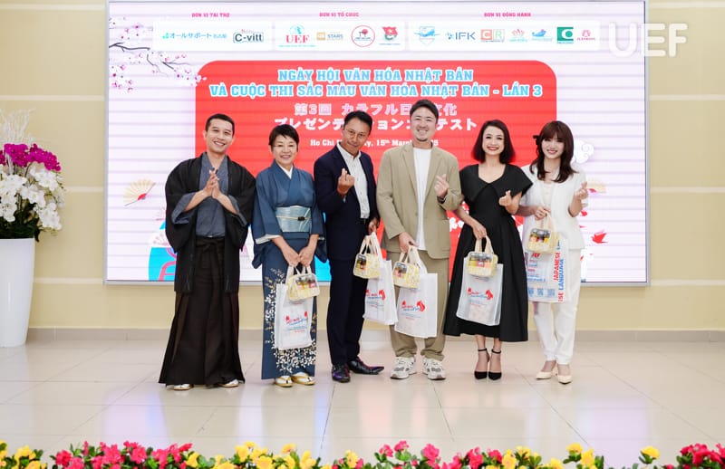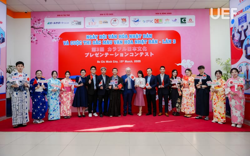 Sáng ngày 15/3, vòng Chung kết cuộc thi “Sắc màu văn hóa Nhật Bản” năm 2025 do ngành Ngôn ngữ Nhật (Khoa Ngôn ngữ và Văn hóa quốc tế), Trung tâm Phát triển nguồn nhân lực Việt Nhật UEF, Đoàn trường UEF phối hợp với Quận Đoàn Bình Thạnh tổ chức đã diễn ra với sự tham gia của nhiều trường THPT trên địa bàn TP.HCM, Đồng Nai. Vòng thi quan trọng này nằm trong chuỗi hoạt động Ngày hội văn hóa Nhật Bản do Nhà trường tổ chức, nhằm mang đến cơ hội học hỏi và trải nghiệm văn hóa Nhật Bản cho học sinh, sinh viên.