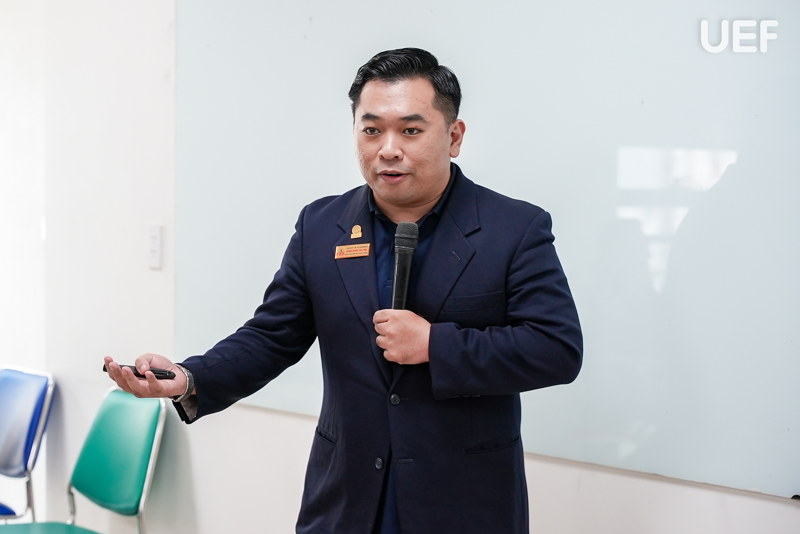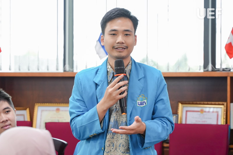 Đại diện UIN, TS. Asyari Hasan chia sẻ sự trân trọng đối với sự đón tiếp chu đáo từ UEF và bày tỏ mong muốn tiếp tục mở rộng thêm các hoạt động trao đổi sinh viên giữa hai trường.