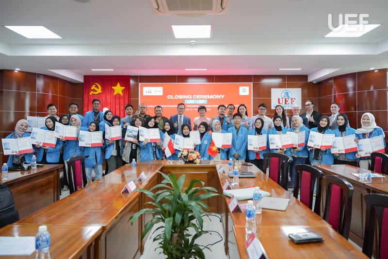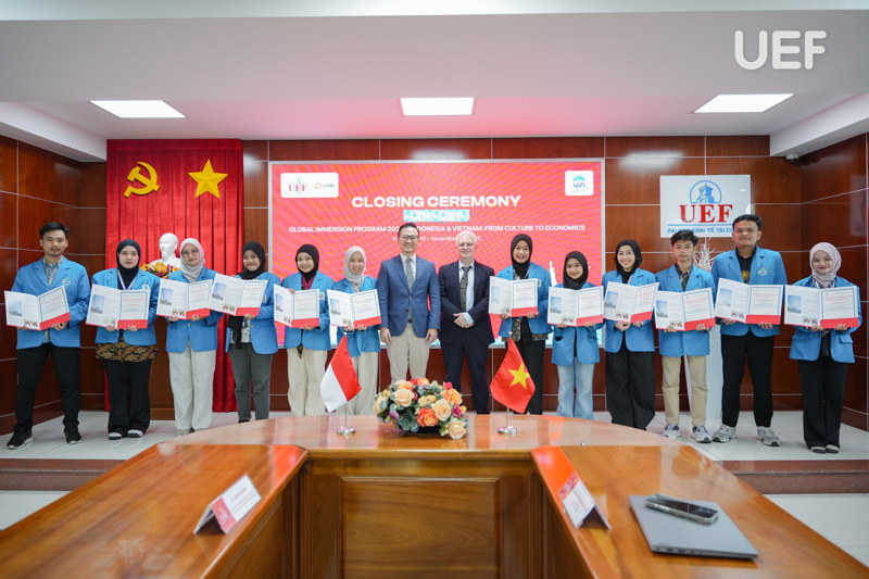 Phần trao giấy chứng nhận hoàn thành chương trình cho các sinh viên UIN đã khép lại chuyến học tập và giao lưu văn hóa đầy thú vị. UEF hy vọng những trải nghiệm tại Việt Nam sẽ trở thành hành trang quý báu, truyền cảm hứng cho sinh viên UIN trong học tập và trên hành trình trở thành những công dân toàn cầu.