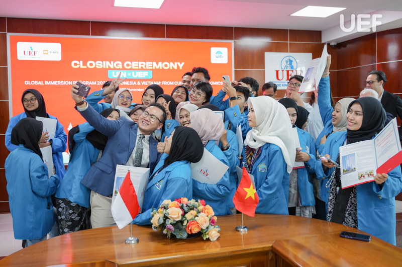 Chiều ngày 21/11, UEF đã tổ chức Lễ tổng kết chương trình Global Immersion Program 2025 - Indonesia & Vietnam: From Culture to Economics, khép lại thời gian giao lưu học thuật, văn hóa giữa sinh viên UEF và Universitas Islam Negeri Syarif Hidayatullah Jakarta (UIN), Indonesia, mở ra nhiều cơ hội hợp tác quốc tế sâu rộng trong tương lai.
