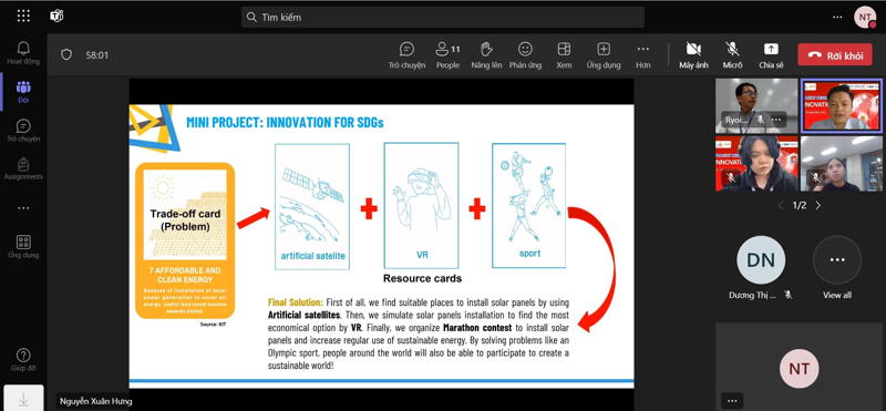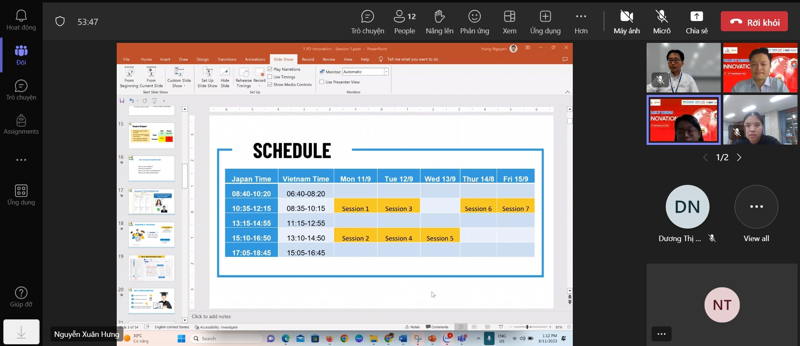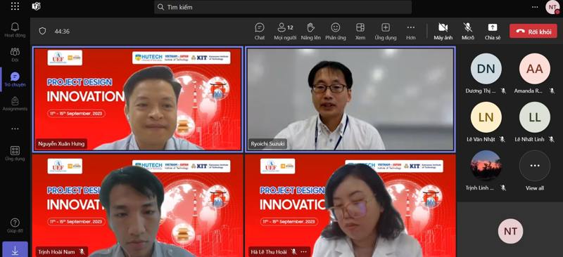 Buổi học đầu tiên được tổ chức online với sự tham gia, điều phối và giảng dạy của GS.TS Suzuki Ryoichi - Giảng viên K.I.T, ThS. Nguyễn Xuân Hưng - Giám đốc Trung tâm Đào tạo thiết kế dự án UEF, ThS. Hà Lê Thu Hoài - Phó Giám đốc Trung tâm Đào tạo thiết kế dự án UEF.