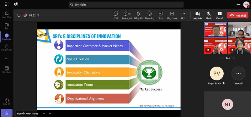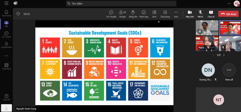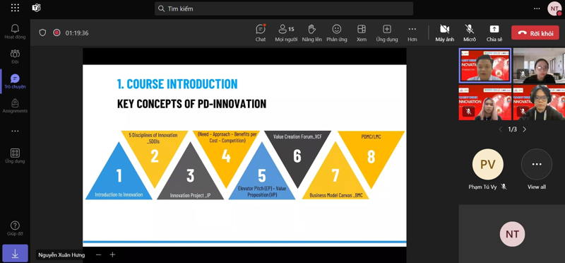Tham gia buổi học, sinh viên được tiếp cận và nắm bắt những khái niệm cơ bản liên quan đến đội nhóm sáng tạo, thủ lĩnh sáng tạo. Tiếp đến là những thông tin về nguyên tắc khi làm việc nhóm - một trong những nội dung quan trọng của bài học này. Đây là những thông tin cũng như trang bị cơ bản trước khi các bạn sinh viên thiết lập đội hình để thực hiện một dự án cụ thể xuyên suốt trong khóa học. Buổi học còn mang đến một vài dự án thực tiễn liên quan đến các mục tiêu phát triển bền vững. Thông qua đó, sinh viên sẽ có góc nhìn tổng quát và hiểu sâu hơn về ý nghĩa, tầm quan trọng của việc đổi mới sáng tạo.