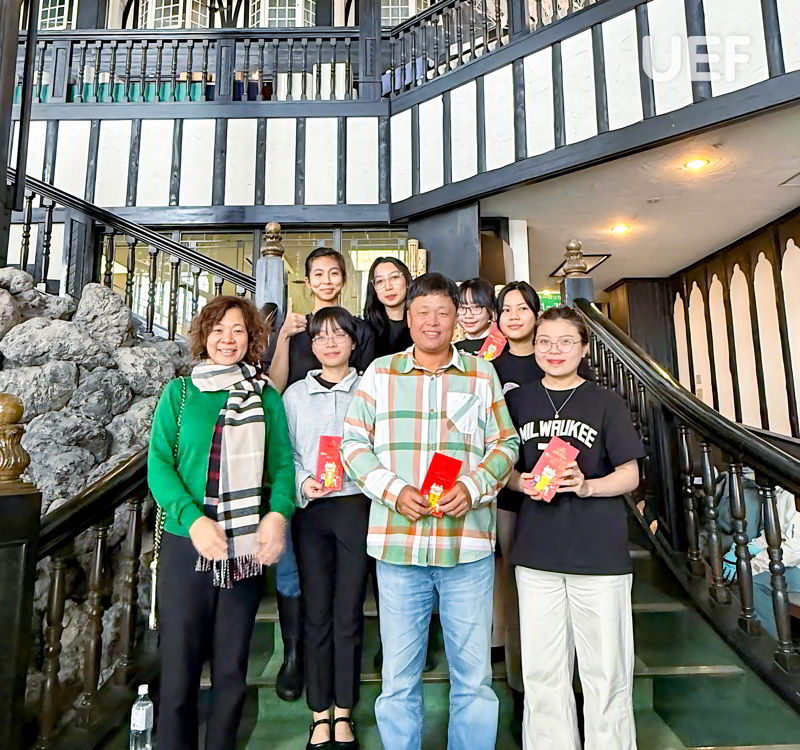 Ngay trong dịp Tết Nguyên đán Ất Tỵ 2025, lãnh đạo Nhà UEF đã có chuyến thăm hỏi, chúc Tết các bạn sinh viên đang tham gia thực tập tại khách sạn Green Plaza Joetsu, Niigata, Nhật Bản, đồng thời gửi lời chúc mừng năm mới đến doanh nghiệp đối tác ở xứ sở hoa anh đào.