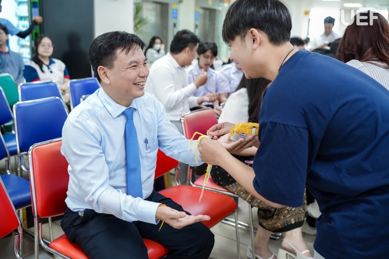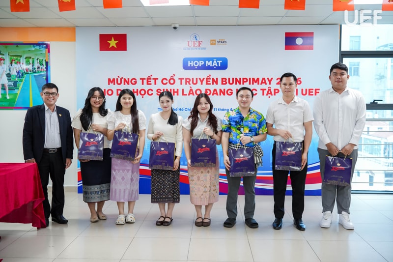 Trong khuôn khổ buổi lễ, Ban lãnh đạo Nhà trường cũng đã trao tặng quà và thiệp chúc mừng cho 20 bạn lưu học sinh Lào đang học tập tại UEF.