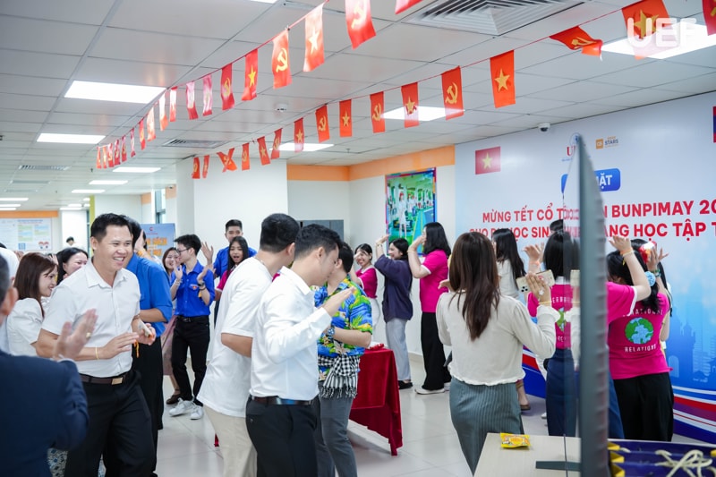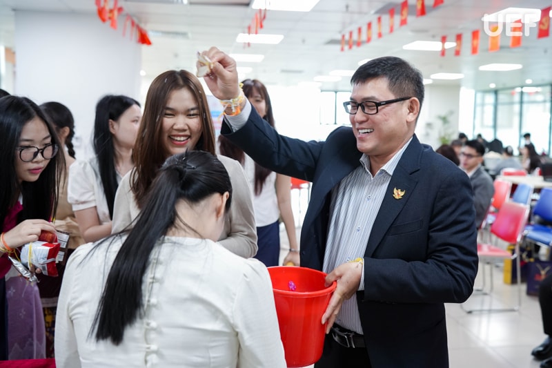 Tết cổ truyền Bunpimay diễn ra vào trung tuần tháng 4 hằng năm là thời điểm quan trọng để người dân Lào cầu chúc bình an và may mắn. Nhằm tạo không gian văn hóa gần gũi và mang lại sự ấm áp cho các lưu học sinh đang học tập xa nhà, ngày 11/4 vừa qua, UEF tổ chức chương trình giao lưu Tết cổ truyền cho lưu học sinh Lào. Chương trình là dịp để sinh viên 2 nước gắn kết, đồng thời giúp UEFers tìm hiểu thêm về phong tục tập quán của quốc gia láng giềng.