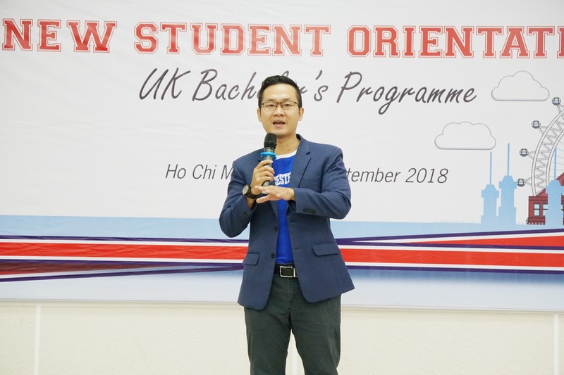 Tiếp đó, ThS. Đặng Văn Lẹ - Phó viện trưởng Viện đào tạo quốc tế đã phổ biến quy chế học tập, chương trình đào tạo Cử nhân quốc tế đại học Gloucestershire đến toàn thể các bạn tân sinh viên.
