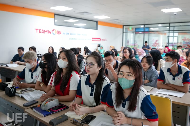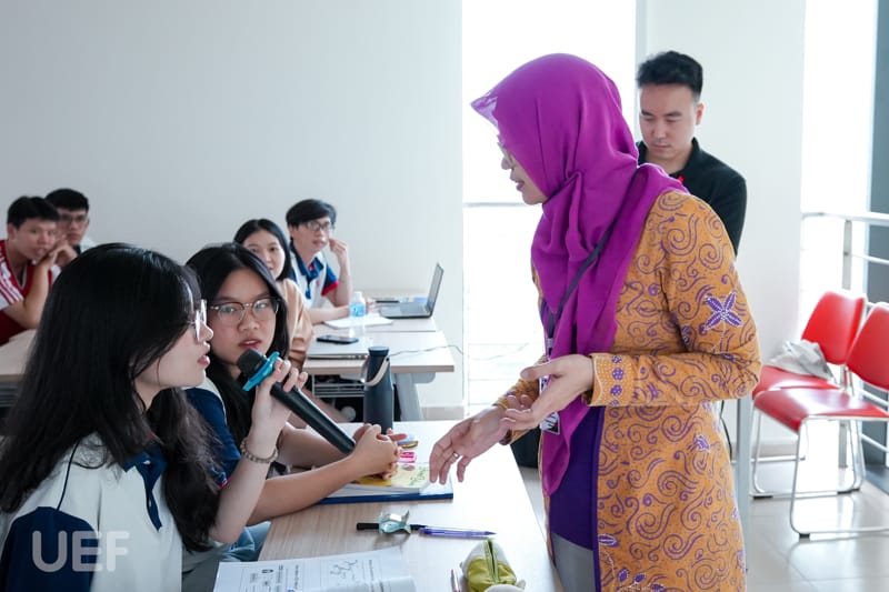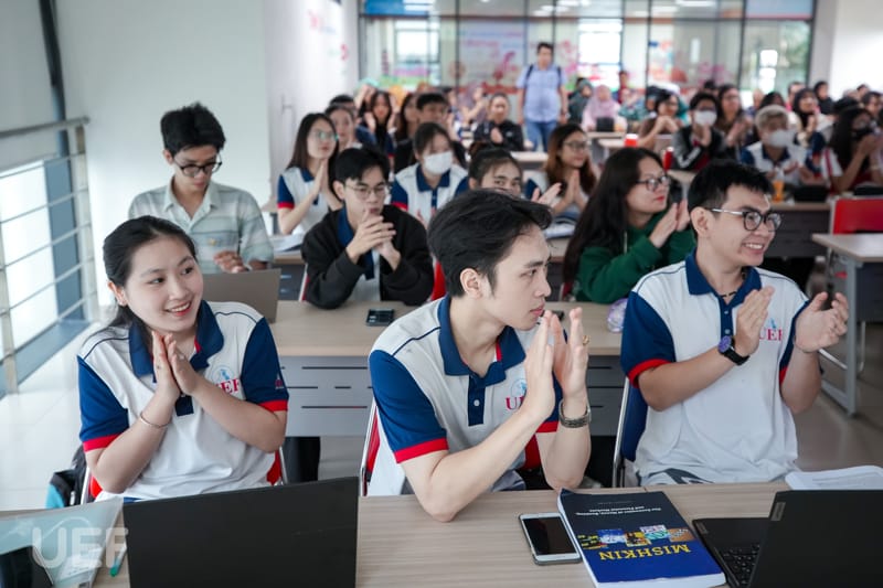Tinh thần học hỏi của sinh viên được đánh giá cao và thể hiện rõ nét. Sau buổi học, đại diện từ các trường đã thuyết trình về các chủ đề giáo dục, kinh tế tập trung khai thác sâu hơn về nghiệp vụ ngân hàng, kinh doanh, hoạt động quốc tế và sự khác biệt giữa các quốc gia. Sinh viên Nhà UEF tích cực tương tác, học hỏi thêm nhiều kiến thức từ giảng viên đến từ các trường đối tác.