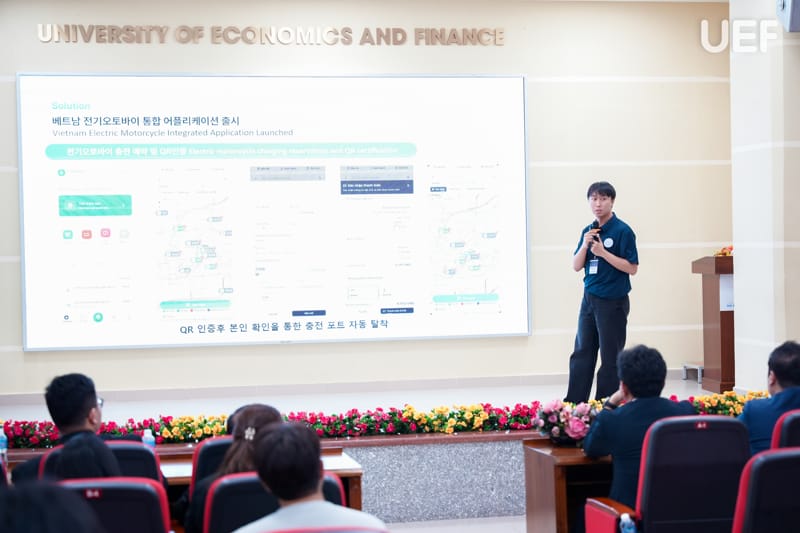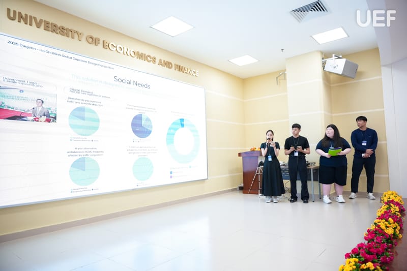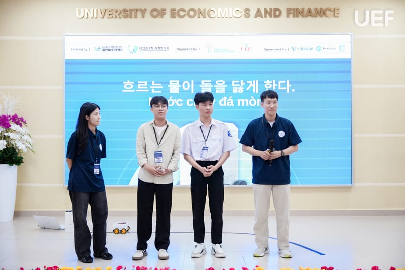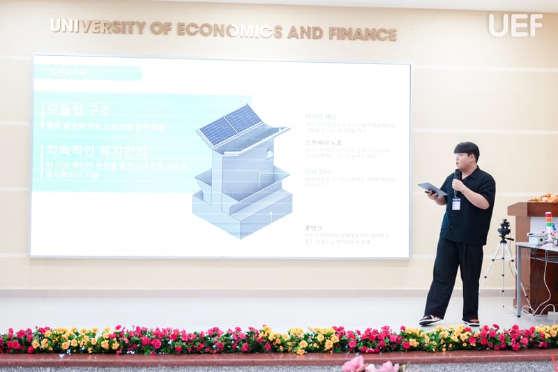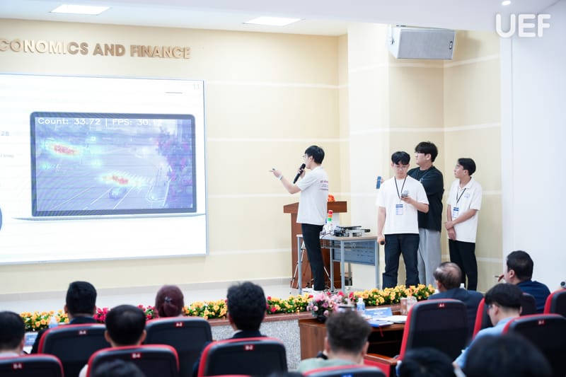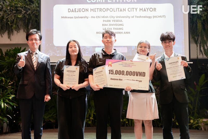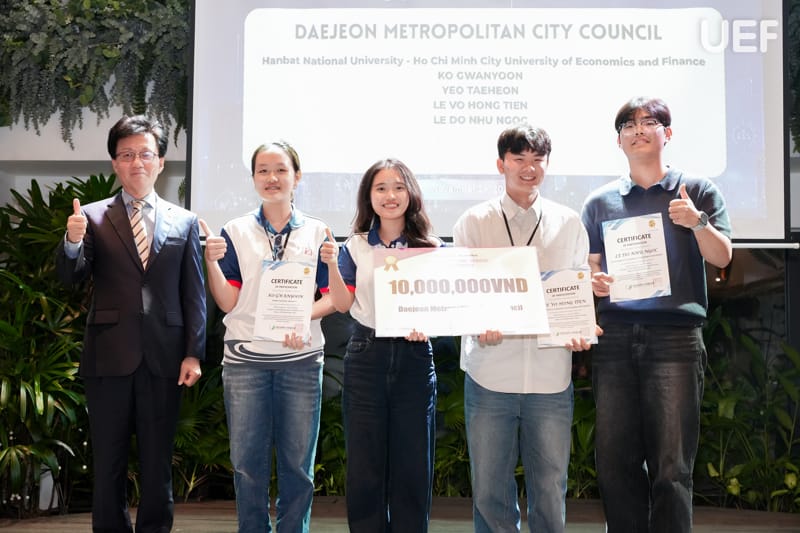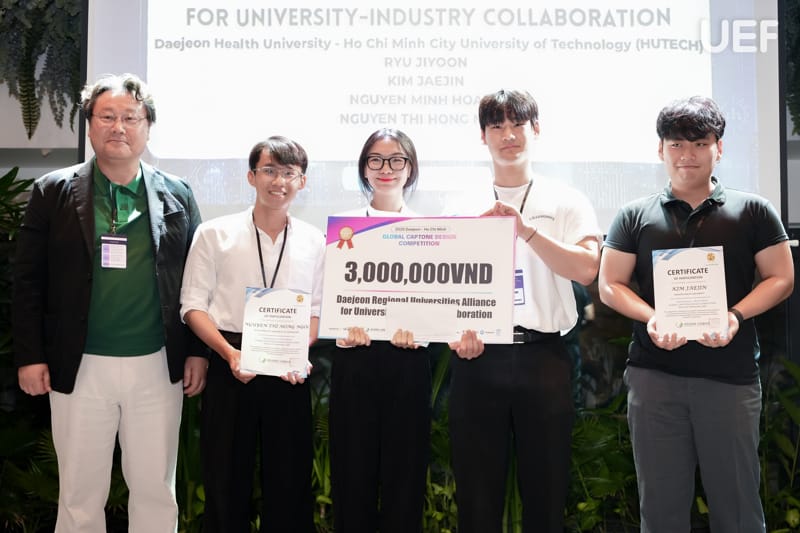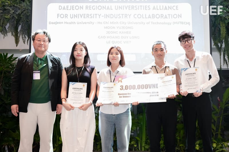 Sân chơi học thuật này do Hội đồng hợp tác Đại học - Công nghiệp khu vực Daejeon (Hàn Quốc) phối hợp cùng UEF tổ chức với chủ đề “Sustainable Urban Living Solutions - Giải pháp cho cuộc sống đô thị bền vững”, nhiều dự án do sinh viên UEF kết hợp với sinh viên Hàn Quốc đã đạt thành tích ấn tượng.