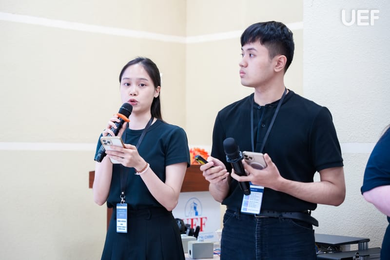 Đại diện UEF, TS. Nhan Cẩm Trí - Phó Hiệu trưởng đã nhấn mạnh giá trị mà cuộc thi mang đến cho sinh viên hai nước, hơn hết là tình bạn gắn kết, giao lưu học thuật và văn hóa sau thời gian cùng nhau nghiên cứu dự án, đồng thời gửi lời chúc tự tin và tỏa sáng đến các đội thi.