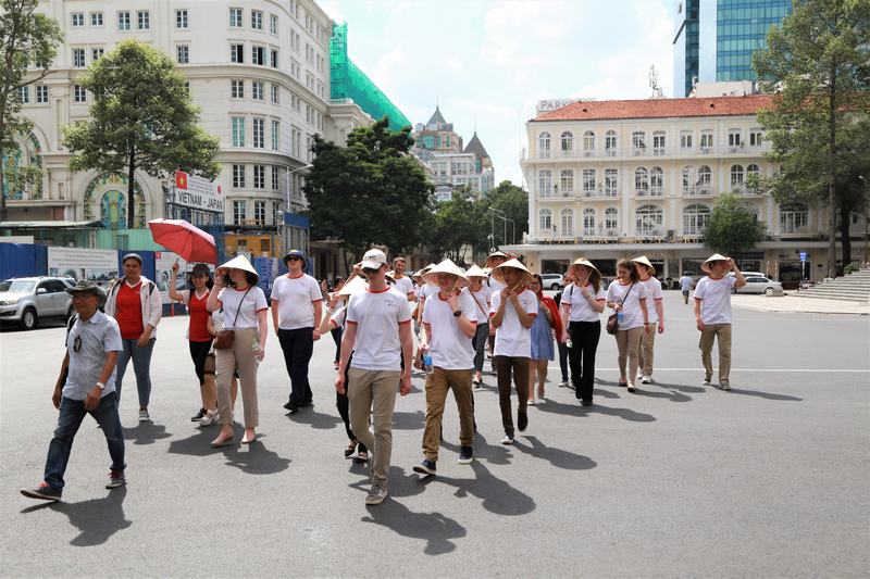 Hoạt động City Tour bước đầu giúp sinh viên Plus 3 tìm hiểu về những địa điểm nổi tiếng của TP.HCM