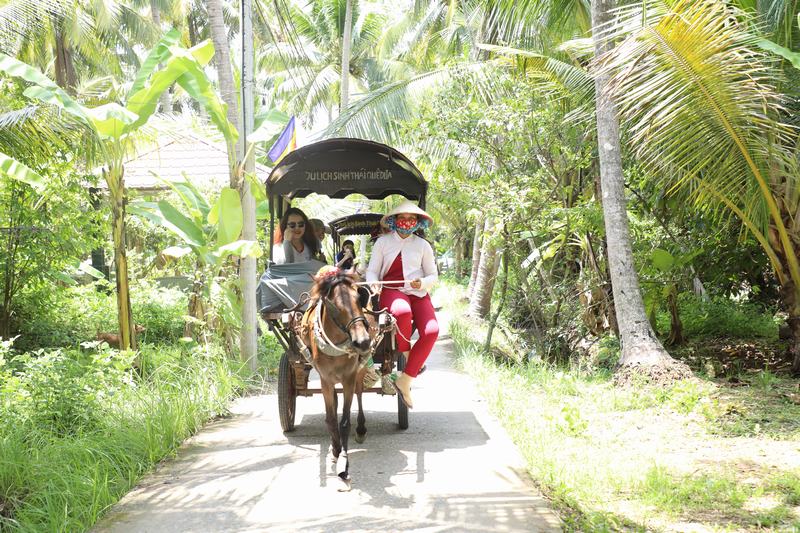 Những người bạn đến từ nửa vòng trái đất không khỏi ngạc nhiên, thích thú khi lần đầu du ngoạn trên những chiếc ghe, xuồng ba lá, xe ngựa ngắm nhìn cảnh đẹp đặc trưng của vùng đồng bằng trù phú của Việt Nam; được tìm hiểu quy trình chế biến kẹo dừa, sản phẩm thủ công mỹ nghệ và cùng thưởng thức những món ăn dân dã đặc sản.
