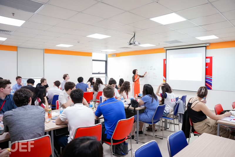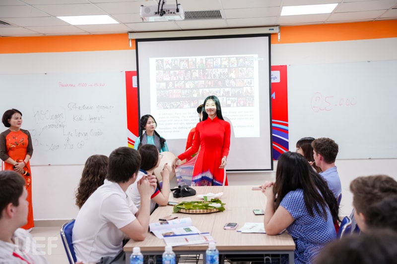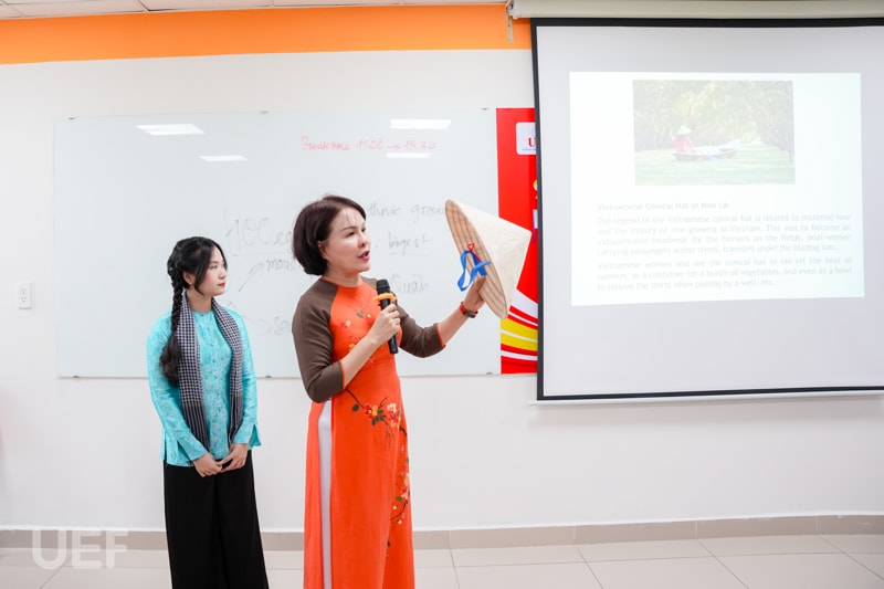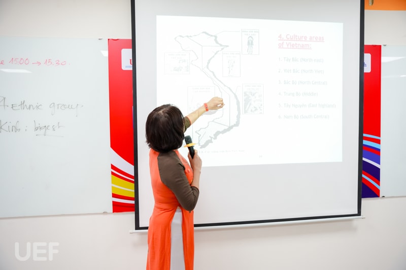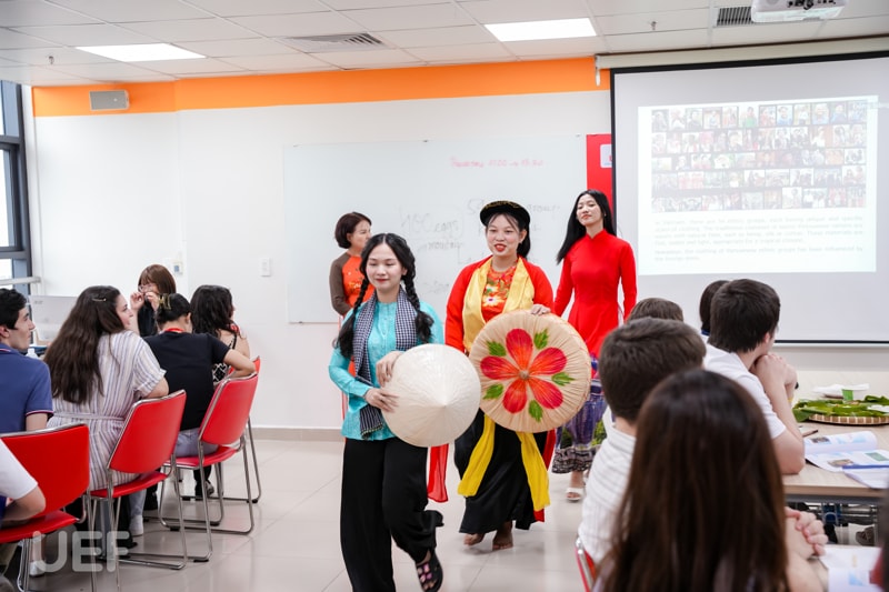 Lớp học do PGS.TS. Hoàng Thị Hồng Hà - Trưởng Khoa Quan hệ công chúng và Truyền thông UEF hướng dẫn. Cô đã ngược dòng thời gian đưa các bạn trở về với những trang sử hào hùng, mở ra bức tranh văn hóa đa dạng và ẩm thực phong phú của đất nước Việt Nam.