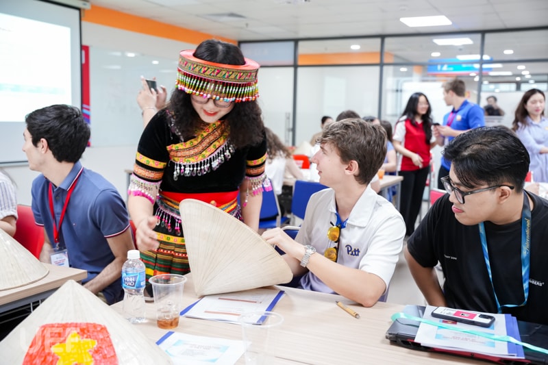 Sinh viên quốc tế hứng thú với những thông tin về văn hóa, lịch sử và ẩm thực Việt Nam