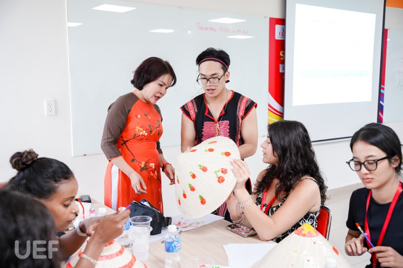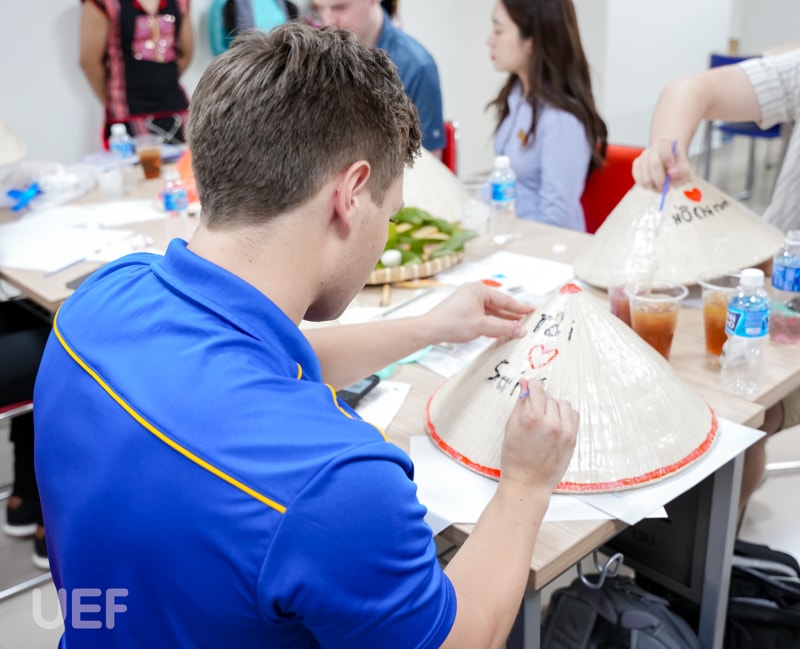 Điều đặc biệt của buổi học là mỗi bạn sinh viên quốc tế được tặng một chiếc nón lá. Các bạn đã thỏa sức sáng tạo vẽ nên những bức tranh của riêng mình. Trong đó, nhiều bạn đã thể hiện tình yêu đối với Việt Nam bằng việc vẽ quốc kỳ, hoa sen,... là những biểu tượng cao đẹp của dân tộc.