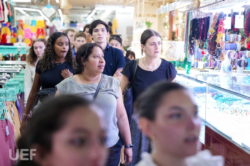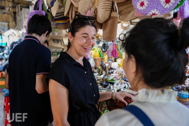 Chiều cùng ngày, những người bạn Hoa Kỳ đã di chuyển đến chợ Bến Thành và mua sắm nhiều món quà lưu niệm gắn với hình ảnh Việt Nam. Hoạt động giao lưu vào buổi tối trong khuôn khổ Olympic UEF 2024 càng làm tăng sự gắn kết giữa sinh viên hai trường. Các bạn đã tham gia bộ môn Bóng rổ nội dung nam, nữ với đội tuyển UEF trong sự cổ vũ sôi nổi của đông đảo sinh viên.