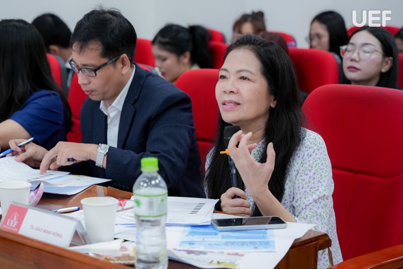 Các thầy cô tham dự, lắng nghe chia sẻ của các nhóm sinh viên