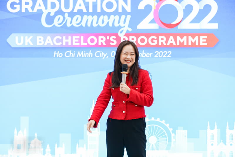 Với khoảnh khắc ý nghĩa của quãng đời sinh viên, các tân Cử nhân cũng được lắng nghe lời gửi gắm, chia sẻ và chúc mừng từ ông Sam Wood - Phó Tổng Lãnh sự, Tổng Lãnh sự quán Anh tại TP.HCM về những nỗ lực sau chặng đường học tập. Ông hy vọng các bạn sẽ tiếp tục đạt được thành công, với bằng cử nhân quốc tế từ trường đại học của Anh Quốc, các bạn sẽ hội nhập và trở thành công dân toàn cầu.