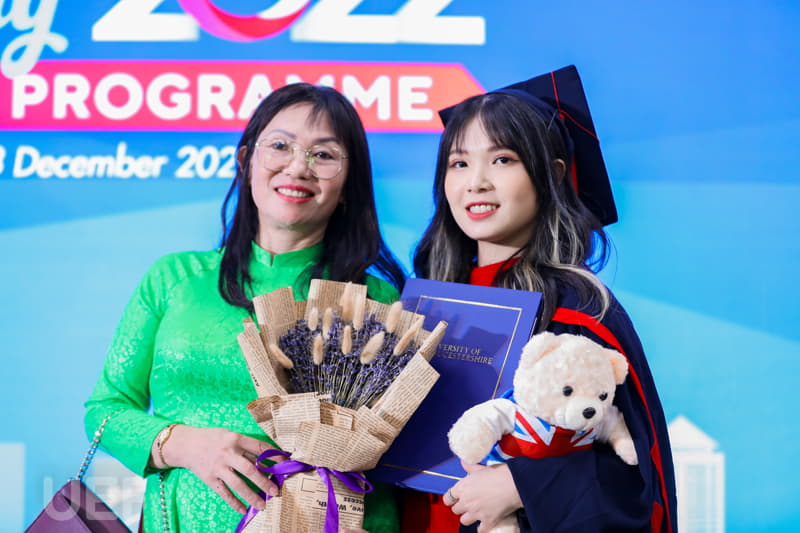 Đặc biệt, trong ngày lễ này, thầy Stephen Marston - Hiệu trưởng Đại học Gloucestershire đã gửi lời chúc mừng đến các bạn: “Tốt nghiệp là cột mốc quyết định, đánh dấu và tượng trưng cho một chặng đường mà sinh viên đã đi qua, trên hành trình đó, các bạn đã phát triển nội lực bản thân và trau dồi kỹ năng để trưởng thành. Ngày hôm nay, tôi hy vọng rằng các bạn sẽ tốt nghiệp với tinh thần lạc quan, đầy tự tin để chào đón những cơ hội rộng mở phía trước, bởi các bạn đã chứng tỏ rằng mình có thể đương đầu với những khó khăn, thử thách và tôi tin chắc các bạn sẽ thành công trong mọi hoàn cảnh. Các bạn đã đạt được thành tựu trong quá trình học tập với bối cảnh đầy thử thách như hiện tại, vì vậy thành tích của các bạn là vô cùng xứng đáng. Trường Đại học Gloucestershire rất hân hạnh được trao bằng cho các tân cử nhân, đồng thời công nhận tất cả nỗ lực, tài năng và mọi thành quả các bạn đạt được trong quá trình học tập”.
