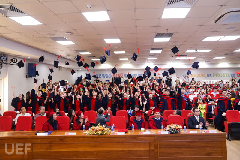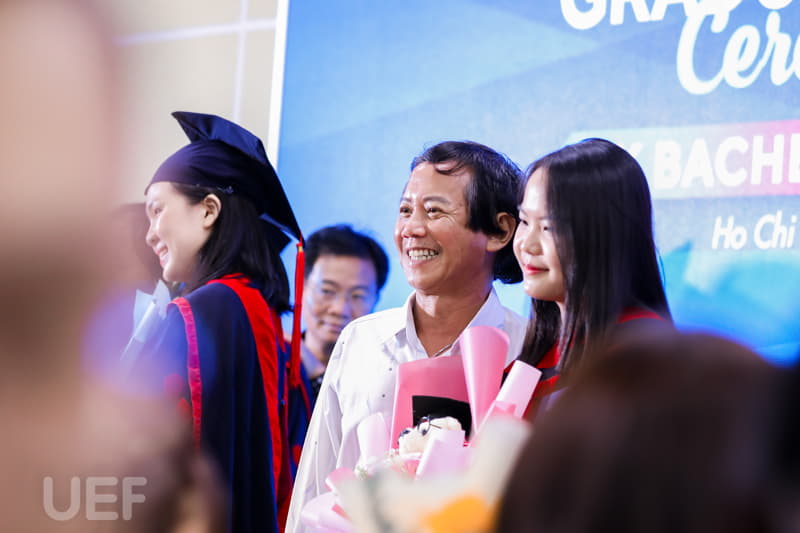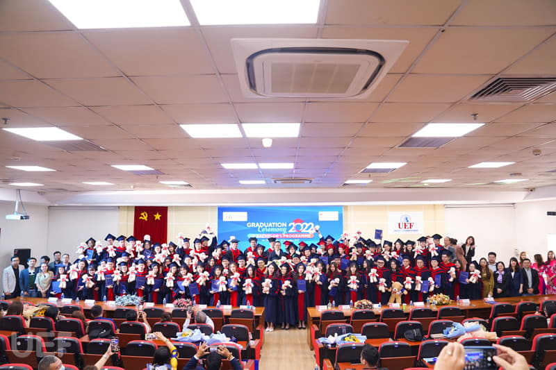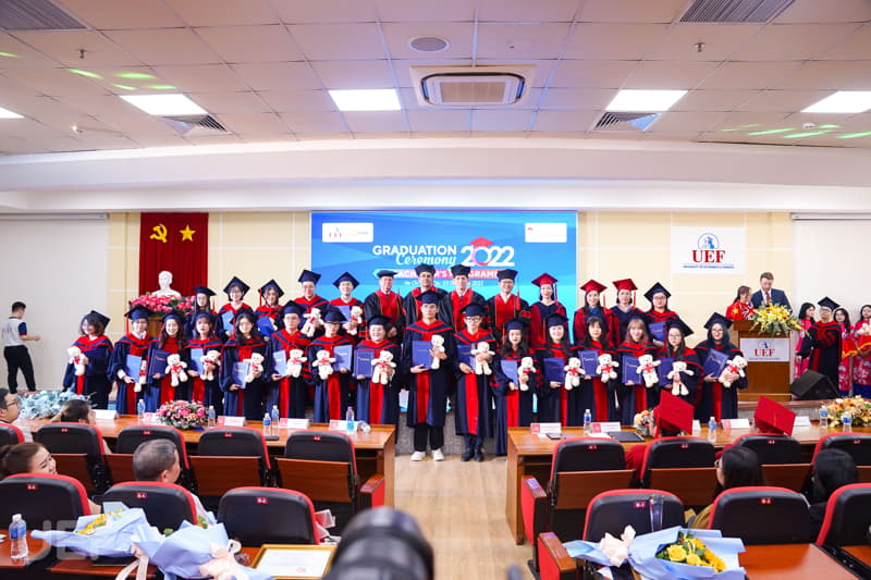 Về phía UEF có đại diện Ban Giám hiệu, Viện Quốc tế, Lãnh đạo các khoa, phòng ban, các thầy cô cùng quý vị phụ huynh và các tân Cử nhân nhận bằng tốt nghiệp đợt này.