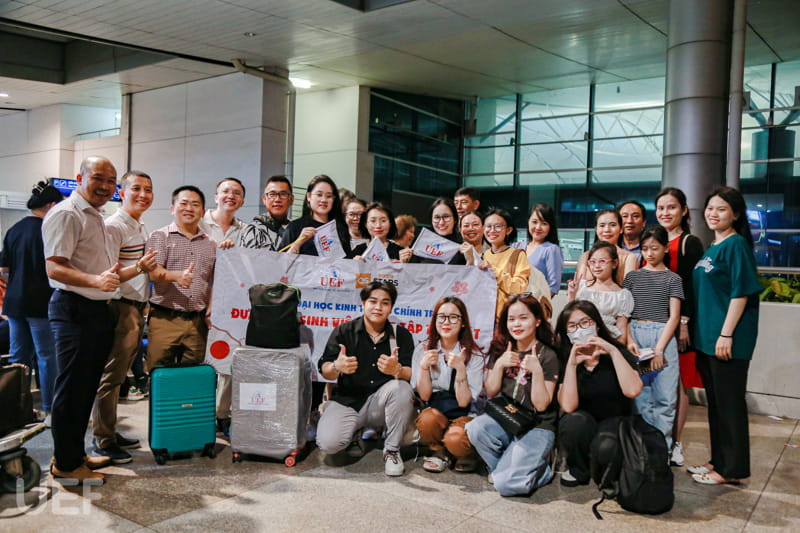 Đại diện Nhà trường và thầy, cô các đơn vị tiễn chân đoàn sinh viên gồm có PGS.TS. Ngô Cao Cường – Phó Hiệu trưởng thường trực, TS. Võ Văn Thành Thân – Trưởng khoa Ngôn ngữ và Văn hóa quốc tế, ThS. Huỳnh Quốc Phong – Giám đốc Trung tâm Hợp tác doanh nghiệp, ThS. Phạm Thị Thùy Linh – Phó Trưởng khoa Ngôn ngữ và Văn hóa quốc tế, ThS. Huỳnh Tú Anh – Phó Viện trưởng Viện Quốc tế cùng các thầy cô Khoa Ngôn ngữ và Văn hóa hóa quốc tế, Trung tâm Hợp tác doanh nghiệp. Bên cạnh đó còn có đại diện công ty IFK – đơn vị chuyên kết nối sinh viên Việt Nam với các doanh nghiệp Nhật Bản.