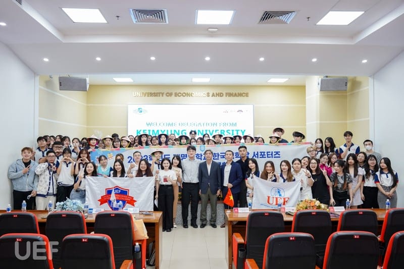 Về phía UEF, đón tiếp đoàn khách quốc tế có: TS. Nguyễn Thanh Giang - Hiệu trưởng Nhà trường, TS. Võ Văn Thành Thân - Trưởng Khoa Ngôn ngữ và Văn hóa Quốc tế, ThS. Phạm Thị Thùy Linh - Phó Trưởng Khoa Ngôn ngữ và Văn hóa quốc tế, ThS. Tô Tôn Thành - Giảng viên Khoa. Đại diện trường Đại học Keimyung là thầy Kim Sung Hyun và 18 bạn sinh viên.