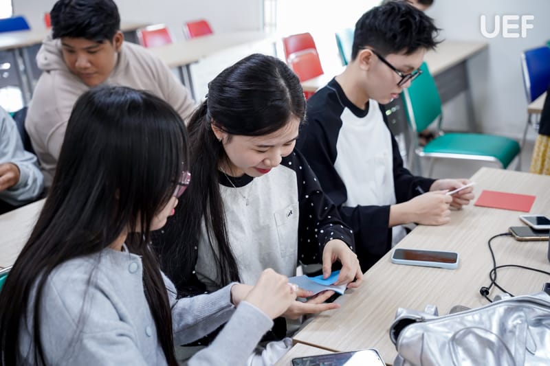 Bên cạnh phần giới thiệu kiến thức, workshop còn mang đến trải nghiệm thực hành nghệ thuật gấp giấy Origami, giúp sinh viên trực tiếp rèn luyện sự khéo léo, tỉ mỉ và kiên nhẫn. Dưới sự hướng dẫn của giảng viên, các bạn đã tự tay gấp nên những cánh hạc Origami mang theo ước nguyện cá nhân, tạo nên không gian học tập nhẹ nhàng, sáng tạo và giàu cảm xúc.