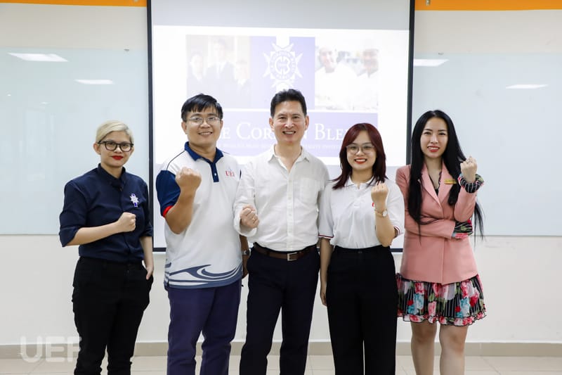 ThS. Nguyễn Viết Thủy - Phó Trưởng khoa Quản trị du lịch - Khách sạn nhấn mạnh thêm: “Đây là cơ hội để sinh viên trải nghiệm môi trường quốc tế, giao lưu cùng bạn bè các nước và theo học chương trình chuyên nghiệp. Le Cordon Bleu là trường đào tạo ngành nhà hàng, ẩm thực hàng đầu thế giới nên những kỹ năng học từ đây là kinh nghiệm quý báu dành cho sinh viên. Các bạn cũng được học những kỹ thuật chuyên môn mới nhất cùng các đầu bếp đạt sao Michelin. Đây là học bổng đầu tiên được Le Cordon Bleu áp dụng và hy vọng sẽ được duy trì cho các bạn sinh viên UEF”.