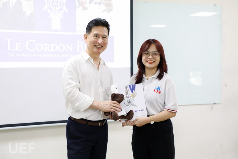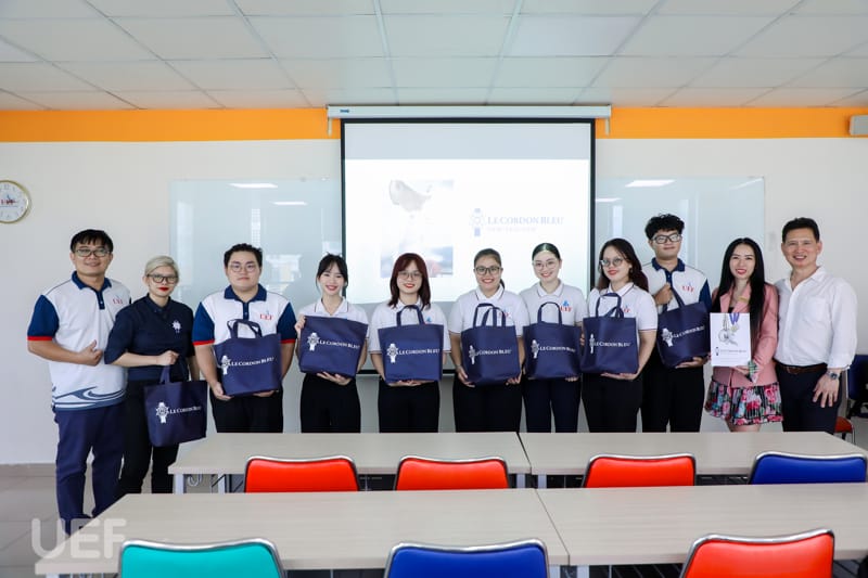 Sau thành công của hoạt động “Tuần lễ Le Cordon Bleu” diễn ra tại UEF vào tháng 9/2023, đại diện học viện đánh giá cao kỹ năng của sinh viên Khoa Quản trị du lịch - Khách sạn UEF và quyết định xét cấp học bổng cho các bạn rèn luyện tại Le Cordon Bleu New Zealand trong 10 tuần.
