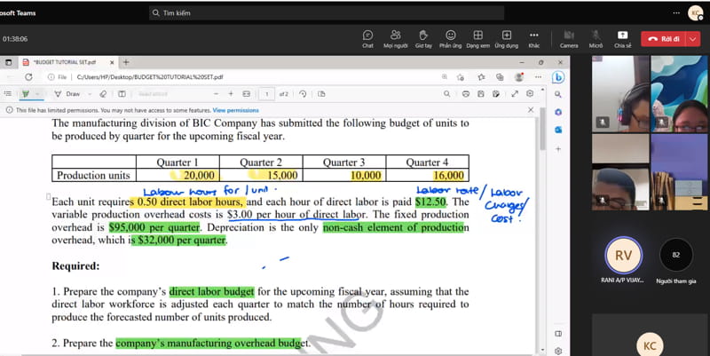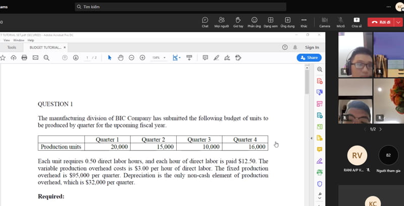 Nội dung của lớp đồng giảng là Budgeting (Lớp dự toán). Sinh viên được tiếp thu kiến thức tập trung vào các bước mà doanh nghiệp thực hiện để đạt được mức lợi nhuận theo kế hoạch của họ.