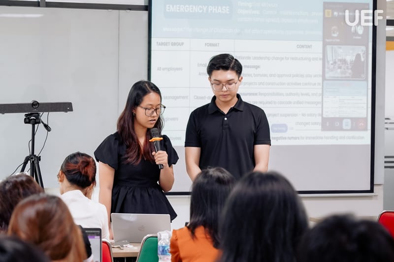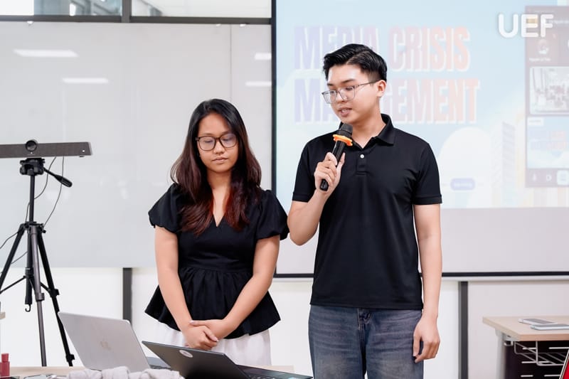 Trong buổi học, sinh viên UEF và TAR UMT được chia thành các nhóm trình bày phân tích những case-study khủng hoảng truyền thông có thật tại Việt Nam và Malaysia, bao gồm các tình huống liên quan đến doanh nghiệp, tổ chức, thương hiệu, sản phẩm.