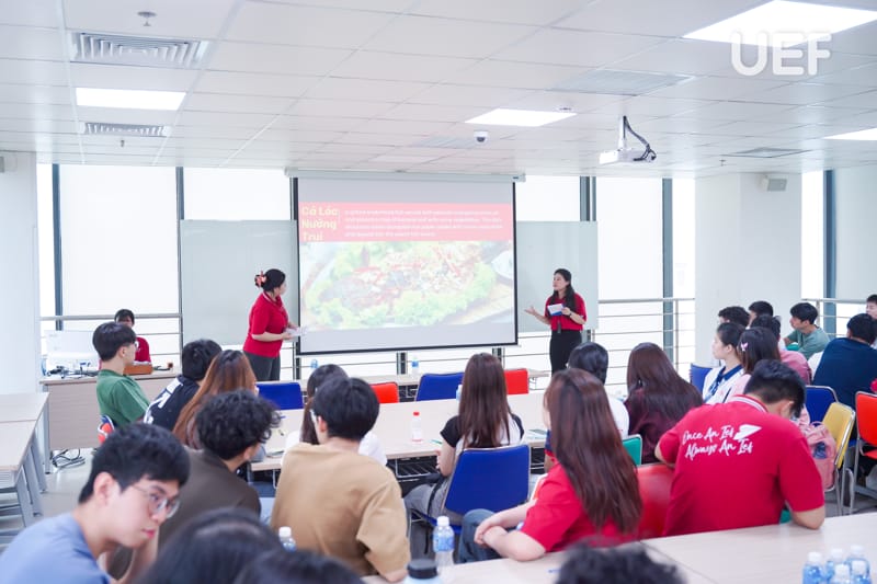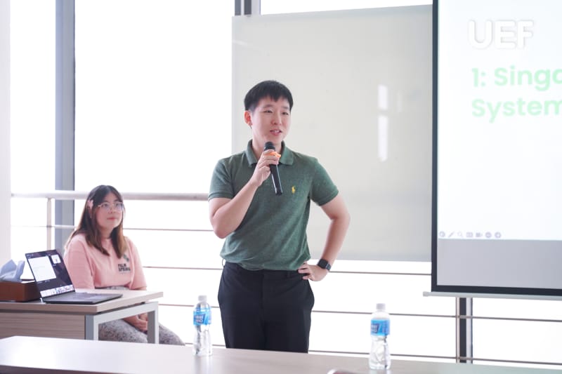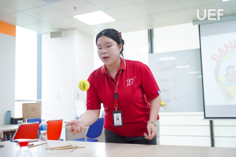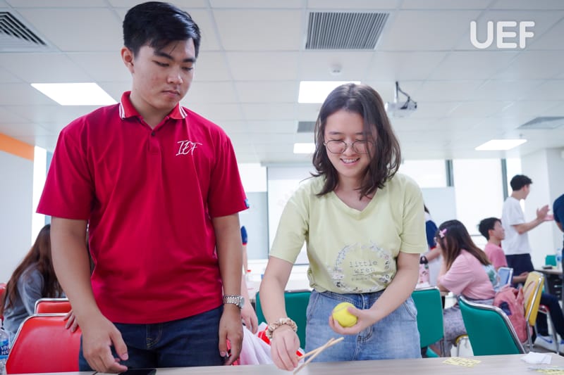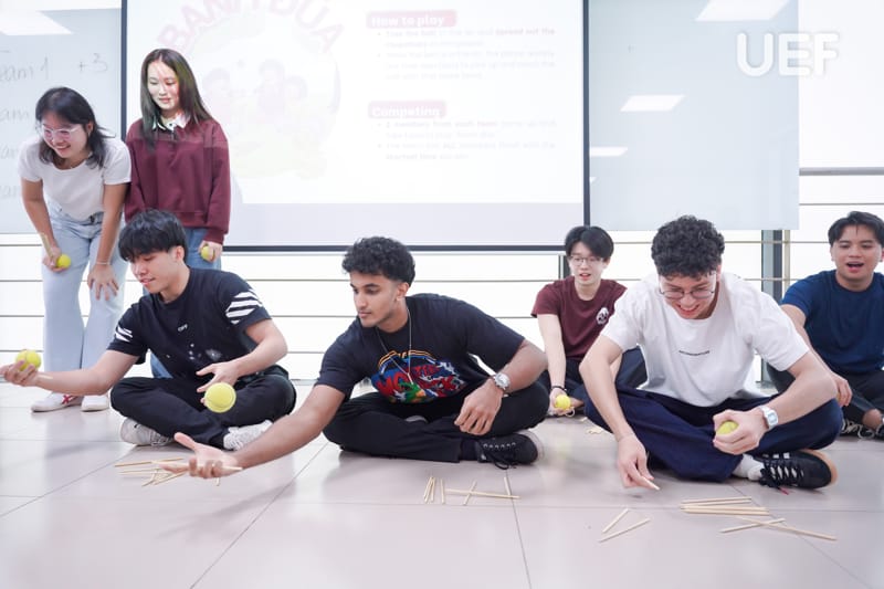 Các bạn sinh viên quốc tế cũng giới thiệu một số thông tin nổi bật về Singapore để UEFers mở rộng góc nhìn toàn cầu. Ở phần hoạt động giao lưu, sinh viên Singapore được trải nghiệm trò chơi dân gian banh đũa đầy thú vị.