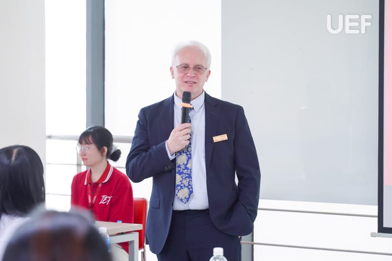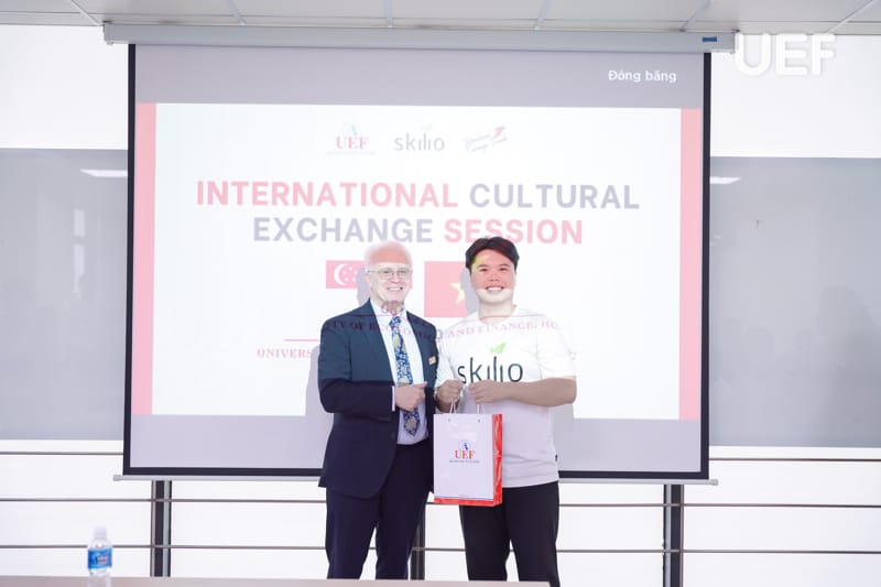 Tham dự buổi giao lưu, GS.TS. Eric Jose Olmedo Panal - Viện trưởng Viện Quốc tế đã gửi lời cảm ơn đến đại diện Công ty Skilio đã kết nối các bạn sinh viên Singapore, đồng thời bày tỏ hy vọng các bạn sẽ khám phá nhiều khía cạnh văn hóa thú vị tại UEF nói riêng và Việt Nam nói chung.