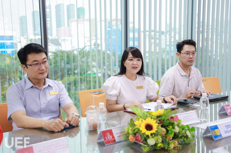 Tại buổi gặp gỡ, đại diện Đại học Ngoại ngữ Busan có cô Jeong Myung Suk - Trưởng phòng Hợp tác quốc tế và ông Park Jae Yeong - Phụ trách phòng Hợp tác quốc tế. Về phía UEF, có TS. Đỗ Hữu Nguyên Lộc - Phó Hiệu trưởng, Viện trưởng Viện Quốc tế; ThS. Phạm Thị Thùy Linh - Phó Trưởng khoa Ngôn ngữ và Văn hóa quốc tế; ThS. Huỳnh Tú Anh - Phó Viện trưởng Viện Quốc tế; thầy Choi Young Taek – Giảng viên ngành Ngôn ngữ Hàn Quốc; thầy Nguyễn Ngọc Hiếu – Trợ lý Trưởng ngành Ngôn ngữ Hàn Quốc.