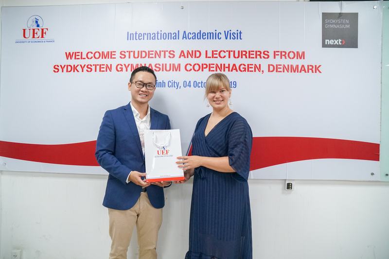 Bên cạnh các bạn sinh viên, Nhà trường còn vinh dự đón tiếp bà Natascha IIIum Larsen – Hiệu trưởng trường Sydkysten, Đan Mạch. Về phía UEF có TS. Đỗ Hữu Nguyên Lộc – Phó Hiệu trưởng Nhà trường, các giảng viên, chuyên viên của Viện quốc tế.