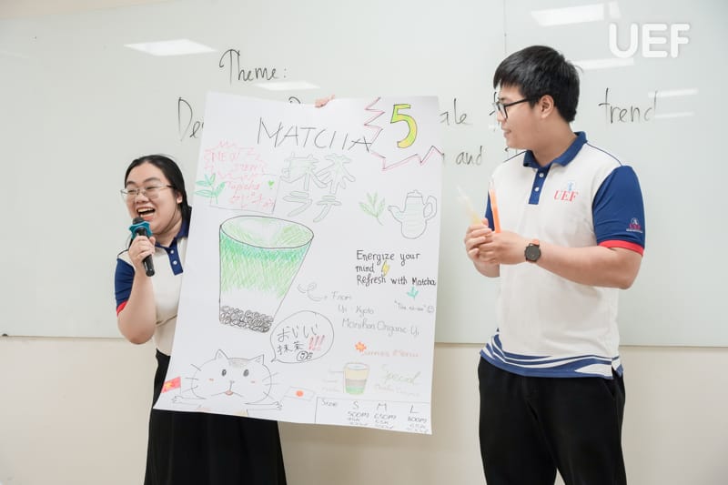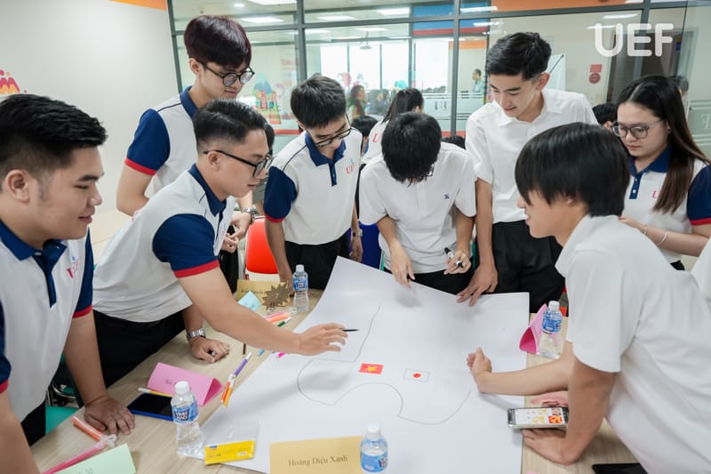 Điểm nhấn của chương trình là hoạt động thực hành sáng tạo đầy hứng khởi: các học sinh Nhật Bản được chia thành 11 nhóm nhỏ, phối hợp cùng sinh viên UEF để thiết kế và vẽ nên một sản phẩm sáng tạo có tiềm năng trở thành xu hướng tiêu dùng ở cả Việt Nam và Nhật Bản. Quá trình cùng nhau lên ý tưởng, thảo luận, trình bày không chỉ giúp các bạn trẻ rèn luyện kỹ năng ngôn ngữ, tư duy thị trường và làm việc nhóm, mà còn là dịp để khám phá sâu hơn những nét giao thoa văn hóa giữa hai quốc gia.