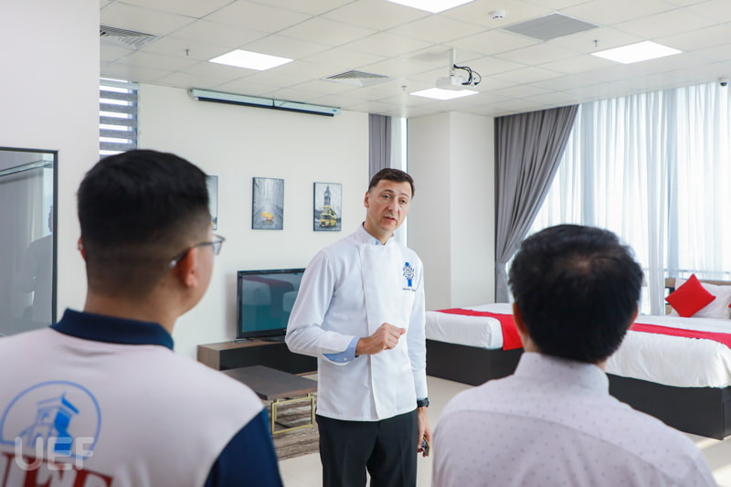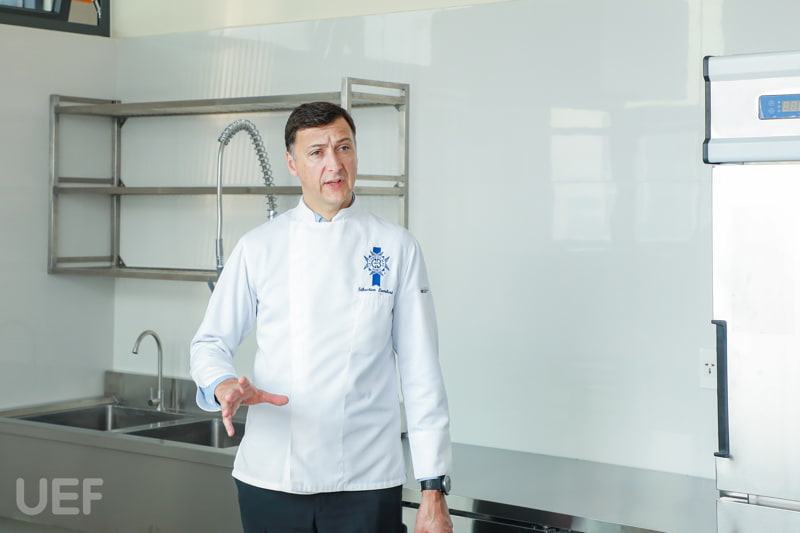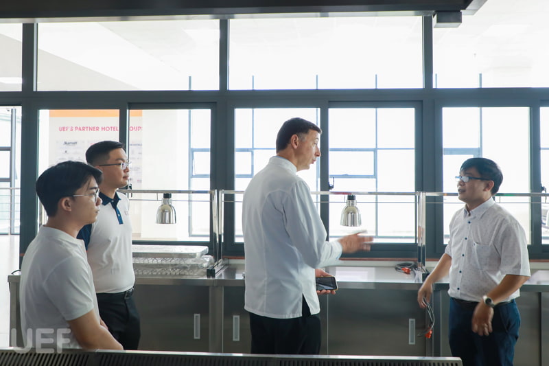 Đây là lần đầu tiên Tổng bếp trưởng Sébastien Lambert đến Việt Nam cũng như UEF, ông bày tỏ sự ấn tượng về trường, đội ngũ giảng viên của Khoa và đặc biệt là cơ sở vật chất phục vụ cho chuyên ngành về ẩm thực tại UEF. Ông cũng khẳng định khu vực bếp thực hành của trường đạt chuẩn quốc tế để giảng dạy các môn chuyên ngành.