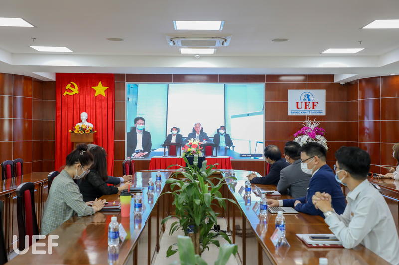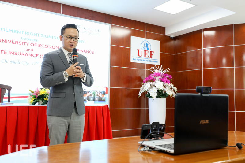 Mở đầu chương trình, đại diện UEF, TS. Đỗ Hữu Nguyên Lộc - Phó Hiệu trưởng Nhà trường, Viện trưởng Viện Quốc tế đã có những chia sẻ đến đối tác các hoạt động quốc tế hóa và các chương trình đào tạo quốc tế của UEF. Theo đó, trường hy vọng có cơ hội được hợp tác lâu dài cùng Dai-ichi-Life để cùng nhau tạo thêm nhiều môi trường hỗ trợ sinh viên, phát triển giáo dục. Đáp lại, đại diện đến từ Dai-ichi Life Campuchia đã dành nhiều lời khen cho UEF, trong đó đặc biệt nhấn mạnh ưu điểm tiếp cận của sinh viên quốc tế với các chương trình quốc tế mà UEF đang đào tạo.