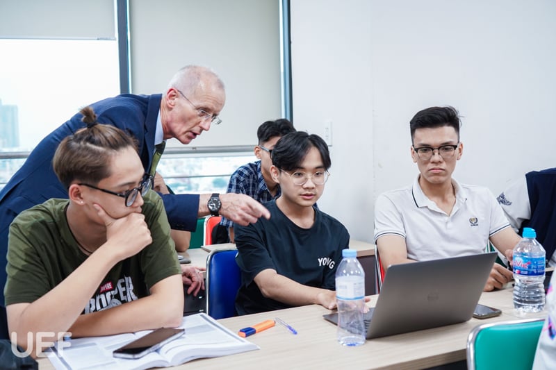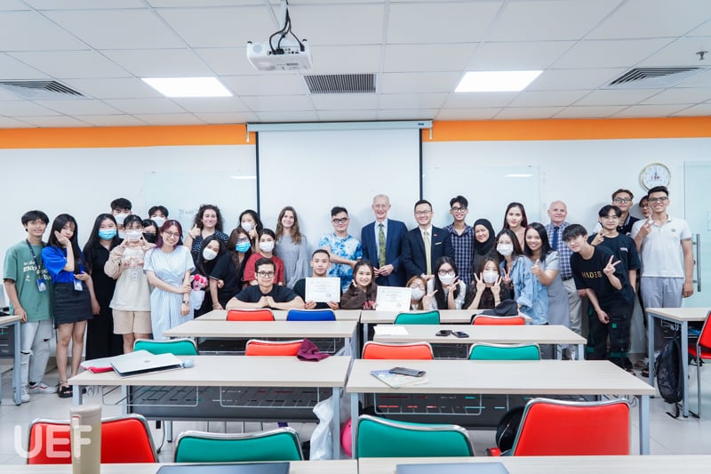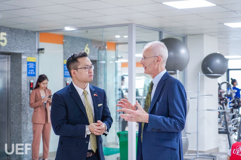 Trước đó, đại diện UoG đã tham quan khuôn viên UEF và không gian lớp học quốc tế tại trường