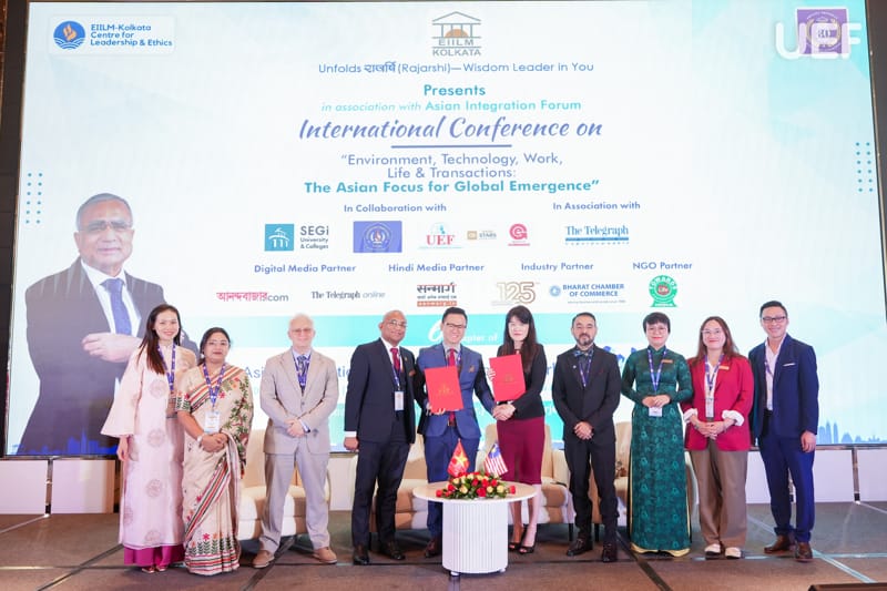 Sáng ngày 30/10, trong khuôn khổ Hội nghị Khoa học quốc tế với chủ đề “Environment, Technology, Work, Life & Transactions: The Asian Focus for Global Emergence” do Viện Kinh tế và Chính sách Kinh tế (EIILM) - Kolkata Ấn Độ chủ trì, phối hợp với Khoa Kinh tế UEF, SEGi University & Colleges (Malaysia) và Universitas Pancasakti Tegal (Indonesia), đã diễn ra lễ ký kết hợp tác MOU giữa UEF với EIILM và SEGi University & Colleges