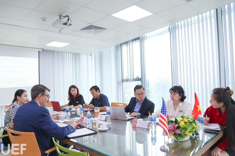 Tham gia buổi làm việc có ông Bryan Schultz - Director of Global Experiences College of Business Administration. Về phía UEF có: TS. Đỗ Hữu Nguyên Lộc - Phó Hiệu trưởng Nhà trường, Viện trưởng Viện Quốc tế; TS. Nguyễn Hồng Nhung - Phó Viện trưởng Viện Quốc tế; ThS. Nguyễn Thị Nguyệt Hoàng - Phó Trưởng phòng Công tác sinh viên; thầy Nguyễn Xuân Quang - Phó Trưởng phòng Quản trị cùng các thầy, cô Viện Quốc tế.