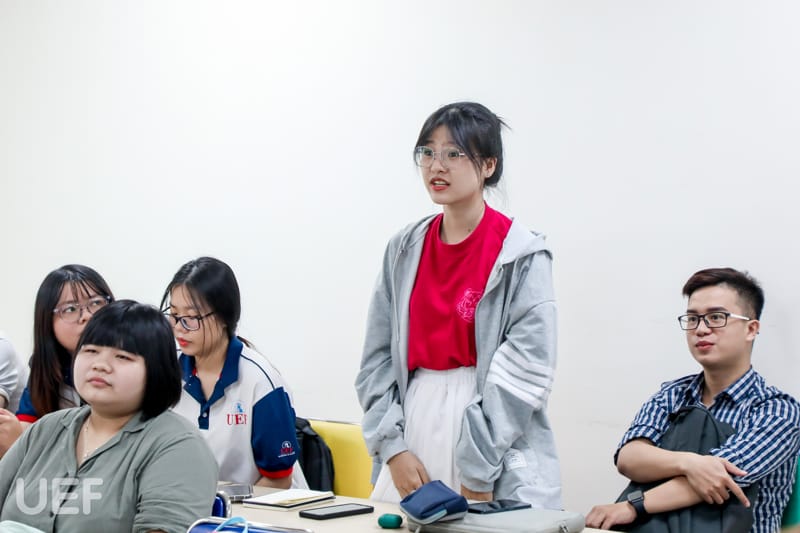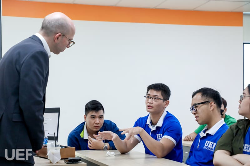 Chiều cùng ngày, TS. Matthew Andrews đã gặp gỡ sinh viên của chương trình Cử nhân quốc tế Đại học Gloucestershire của Nhà UEF. Tại đây, các bạn tích cực đặt câu hỏi về các cơ hội chuyển tiếp sang Anh Quốc, học bổng du học, cũng như bày tỏ mong muốn có thể giao lưu trực tiếp với các bạn sinh viên UoG đang học tập tại Anh Quốc và cơ hội tham quan trường UoG.