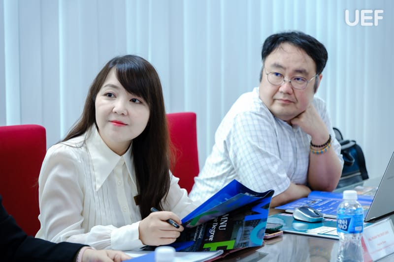Tại buổi làm việc, hai bên đã trao đổi về các phương hướng hợp tác trong thời gian tới, đặc biệt chú trọng đến chương trình giao lưu sinh viên và hợp tác nghiên cứu khoa học. Đại diện MNU cũng giới thiệu chi tiết về chương trình học trao đổi dành cho sinh viên UEF tại Hàn Quốc, bao gồm thông tin về chuyên ngành, môi trường học tập và cơ hội tiếp cận nền giáo dục hiện đại.