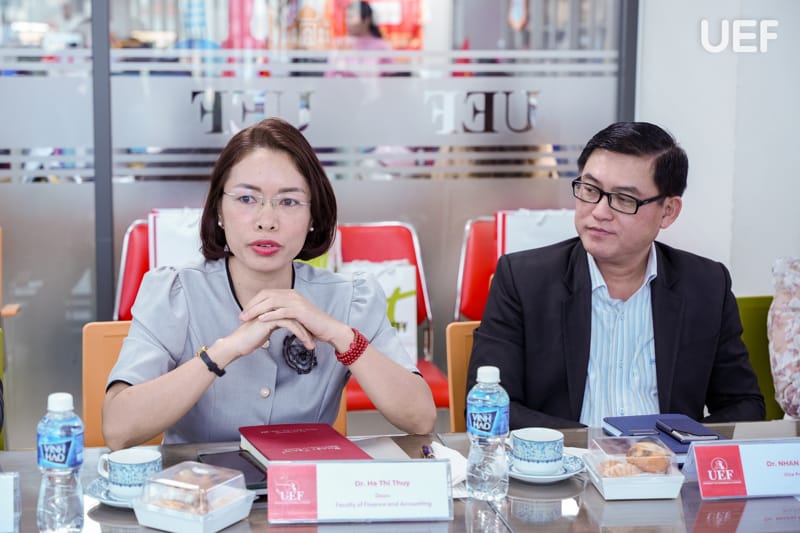 Đại diện UEF tham dự gồm TS. Nhan Cẩm Trí - Phó Hiệu trưởng, TS. Lý Thiên Trang - Giám đốc Bảo đảm và Kiểm định chất lượng, TS. Phan Bảo Giang - Phó Hiệu trưởng cùng lãnh đạo các đơn vị: Khoa Tài chính - Kế toán, Khoa Kinh tế, Khoa Quản trị kinh doanh, Khoa Marketing, Trung tâm Đào tạo thiết kế dự án, Trung tâm Hợp tác doanh nghiệp.