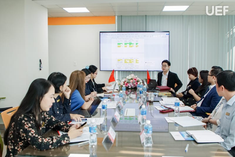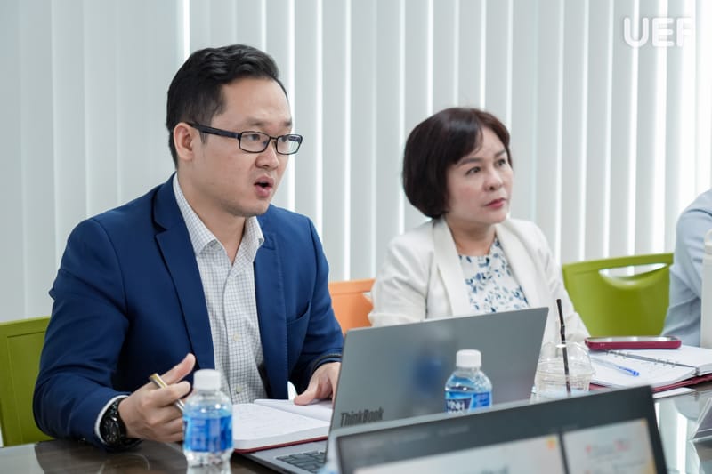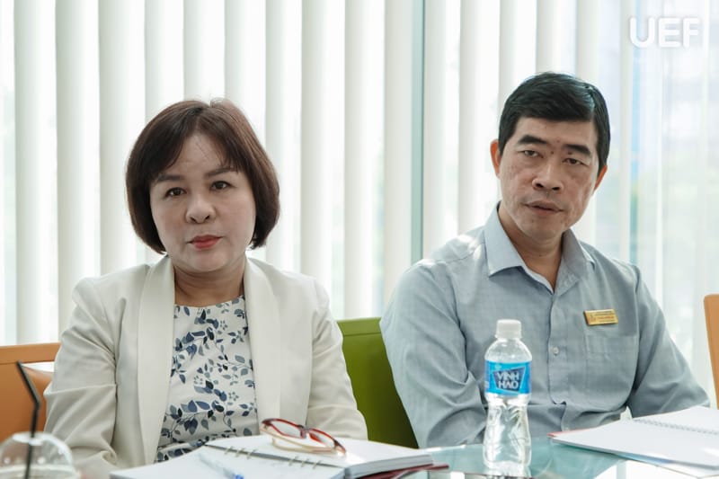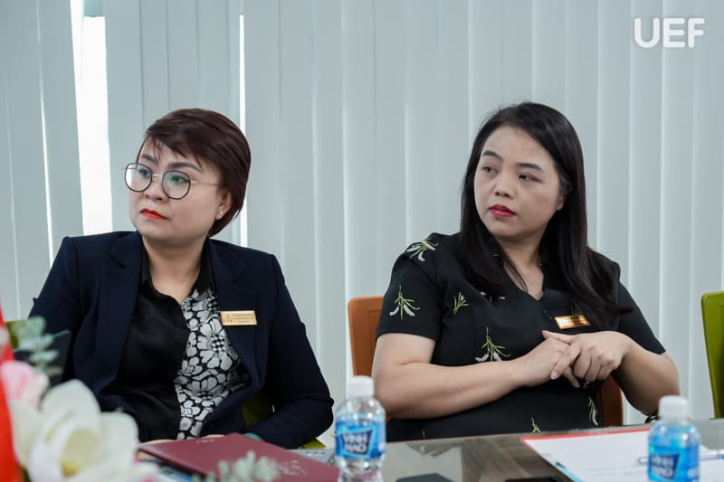 Về phía UEF, buổi làm việc có sự tham dự của TS. Đỗ Hữu Nguyên Lộc - Phó Hiệu trưởng, PGS.TS. Hoàng Thị Hồng Hà - Trưởng khoa Quan hệ công chúng và Truyền thông, TS. Nguyễn Kim Thoa - Phó Viện trưởng Viện Quốc tế, ThS. Trần Phương Quỳnh - Phó Viện trưởng Viện Quốc tế.