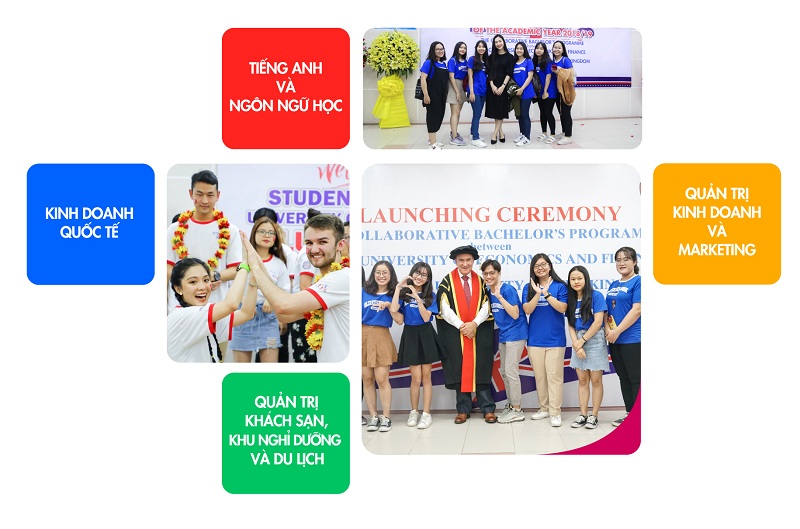 ![]() Bên cạnh đó, sinh viên UEF còn có nhiều lựa chọn ngành học để chuyển tiếp quốc tế như: Quản trị kinh doanh, kinh doanh quốc tế, Kế toán, Tài chính ngân hàng, Marketing, Quản trị nhân lực, Ngôn ngữ Anh, Quản trị dịch vụ du lịch và lữ hành, Quản trị khách sạn, Ngôn ngữ Nhật, Ngôn ngữ Hàn Quốc,… ![]() Với chương trình này, UEF hiện là đối tác của Đại học Gloucestershire và Đại học Leeds Trinity.