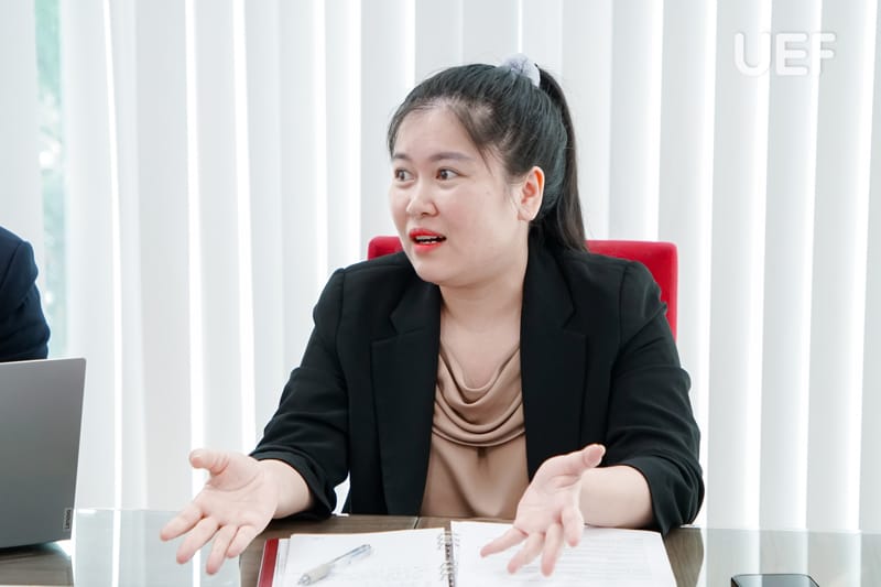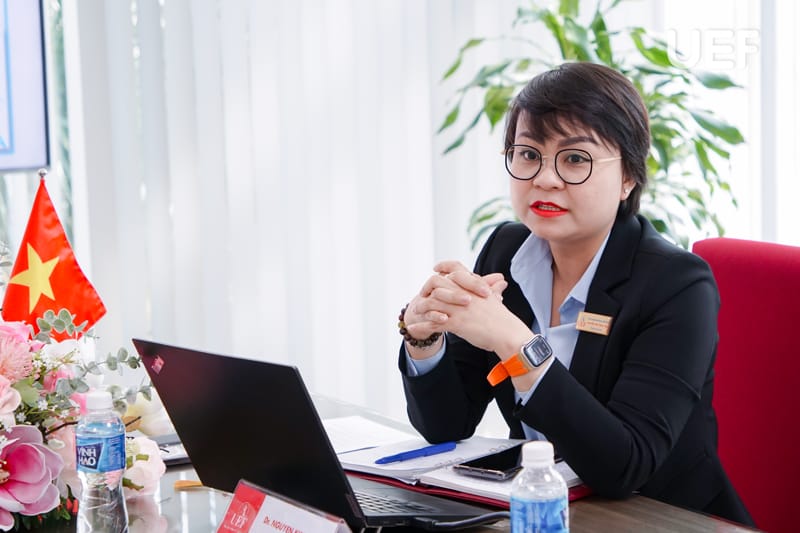 Mở đầu buổi trao đổi, TS. Nguyễn Kim Thoa đã giới thiệu tổng quan về UEF, từ quy mô đào tạo, mạng lưới doanh nghiệp hợp tác đến các chuẩn kiểm định chất lượng quốc tế mà trường đang hướng tới. Cô cũng nhấn mạnh điểm mạnh của các chương trình giảng dạy bằng tiếng Anh và song ngữ, cùng hệ thống liên kết quốc tế phong phú giữa UEF và các trường đại học tại Mỹ, Úc, châu Âu và châu Á.