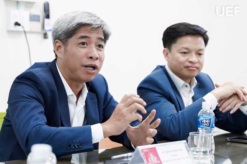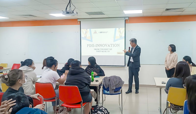 Đoàn lãnh đạo KIT giao lưu và trò chuyện với sinh viên UEF đang học học phần Thiết kế dự án