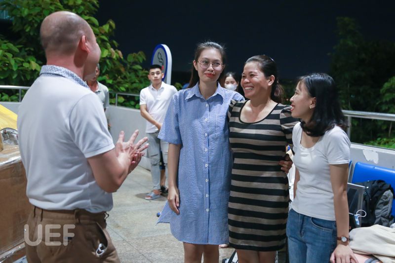 Cứ đều đặn mỗi đợt có sinh viên xuất ngoại, Nhà UEF sẽ có các lãnh đạo, thầy cô đến tiễn chân và động viên tinh thần các bạn. Xuyên suốt 3 buổi vừa qua, ThS. Huỳnh Quốc Phong - Giám đốc Trung tâm Hợp tác doanh nghiệp và đại diện IFK luôn có mặt dặn dò các bạn và chia sẻ thêm thông tin đến quý phụ huynh. Ngoài ra, các thầy cô của Khoa Ngôn ngữ và Văn hóa quốc tế, Viện Quốc tế cũng luân phiên nhau tham gia tiễn chân sinh viên.